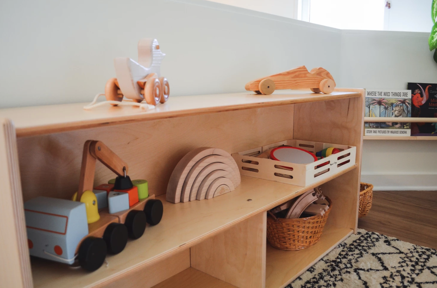Jude's play space takes up the other side of our attic. We moved his teepee (linked below) up here from his bedroom as well as his toy shelf. We try and use the Montessori approach to his play-time and toys as much as possible as he attends Montessori daycare, so his toys are all laid out within plain sight and his book shelves are very low for him to grab books and put them away. We brought his toys up here that take up more space, like his IKEA slide as well as his train track. Some of his other bigger and more obnoxious toys live in the walk-in closet that is also up in the attic (not pictured as I'm still trying to organize it in a way that Jude can grab toys out of easily and put the stuff he's outgrown higher up).